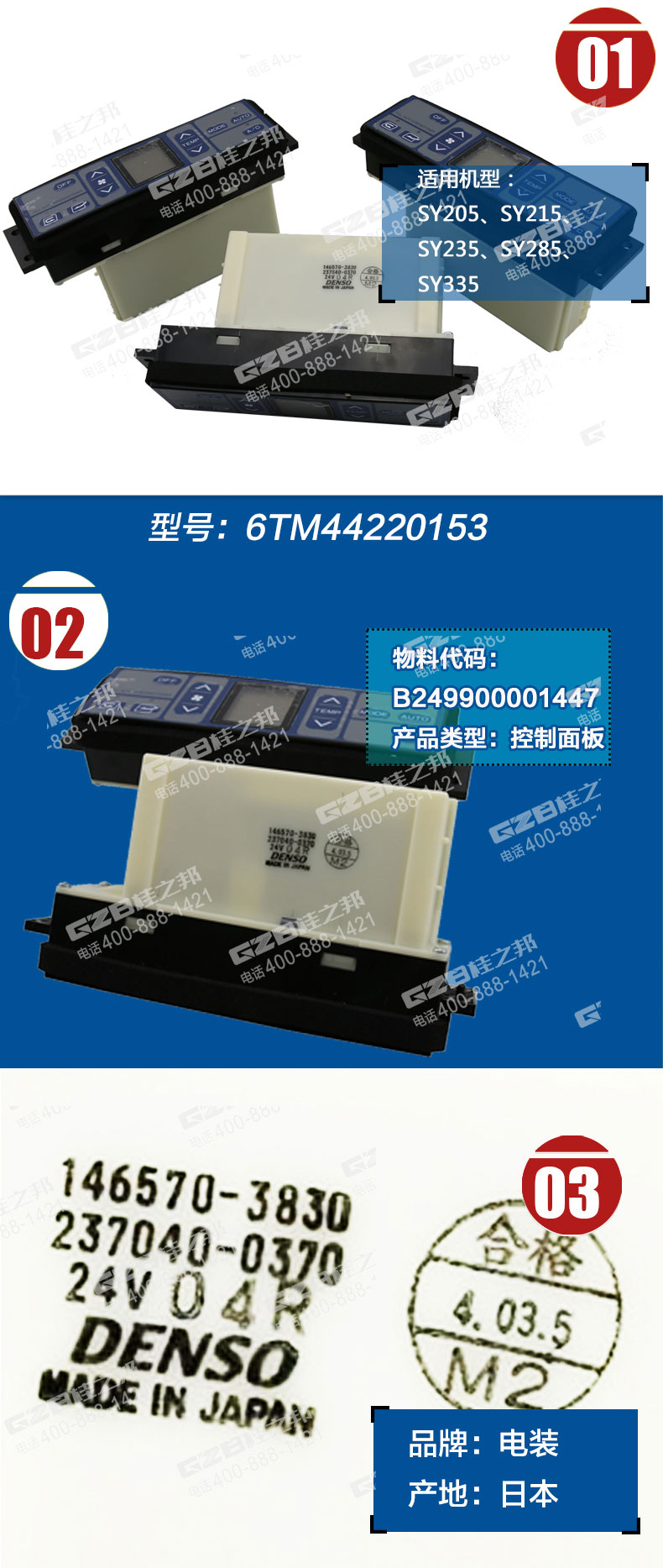 日本原裝進(jìn)口電裝空調(diào)控制面板,B249900001447三一挖掘機(jī)空調(diào)控制面板,適用機(jī)型:SY205、SY215、SY235、SY285、SY335,型號(hào):146570-3830,物料代碼:B249900001447,品牌:電裝,產(chǎn)地:日本,配件,品質(zhì)保證。全國(guó)咨詢熱線:400-888-1421